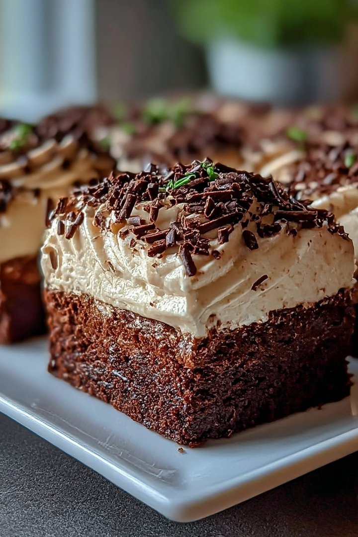 Cover the cake with plastic wrap and refrigerate for at least 4 hours, or preferably overnight, to allow the flavors to meld. Before serving, garnish with chocolate shavings or sprinkles.