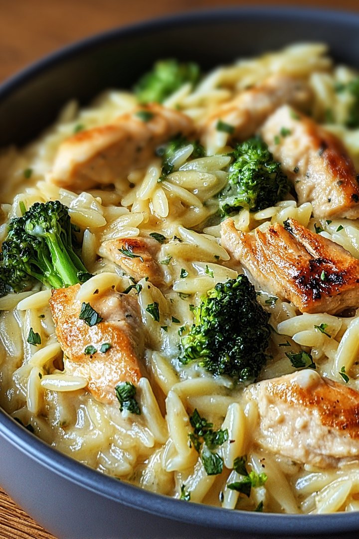 - Vegetarian Cheesy Broccoli Orzo: Omit the chicken and add more vegetables like mushrooms, bell peppers, or zucchini for a satisfying vegetarian meal.
