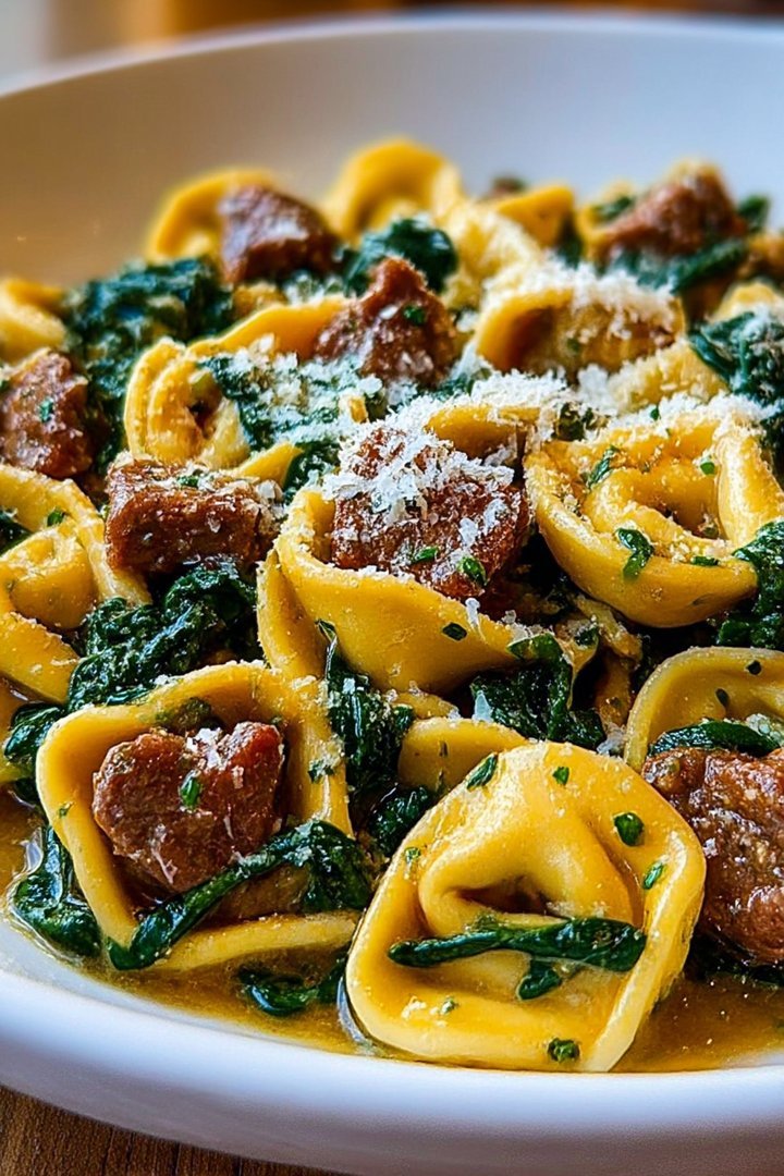 Creamy Garlic Butter Beef & Spinach Tortellini Recipe