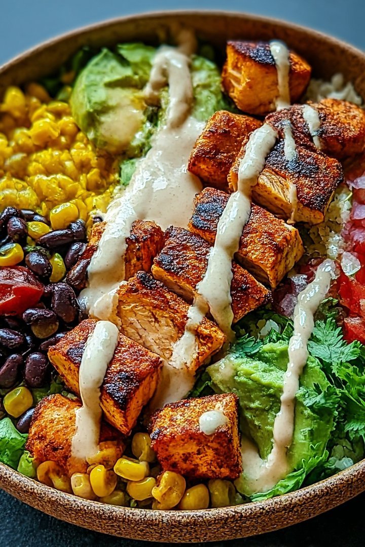 Secondly, it’s customizable. Are you a spice fiend? Crank up the chipotle peppers. Prefer something milder? Tone it down with a dollop of cool sour cream (or a plant-based alternative, we’re all friends here). Vegetarian? Swap the chicken for black beans or grilled tofu. This recipe is your oyster… or, you know, your chicken bowl.