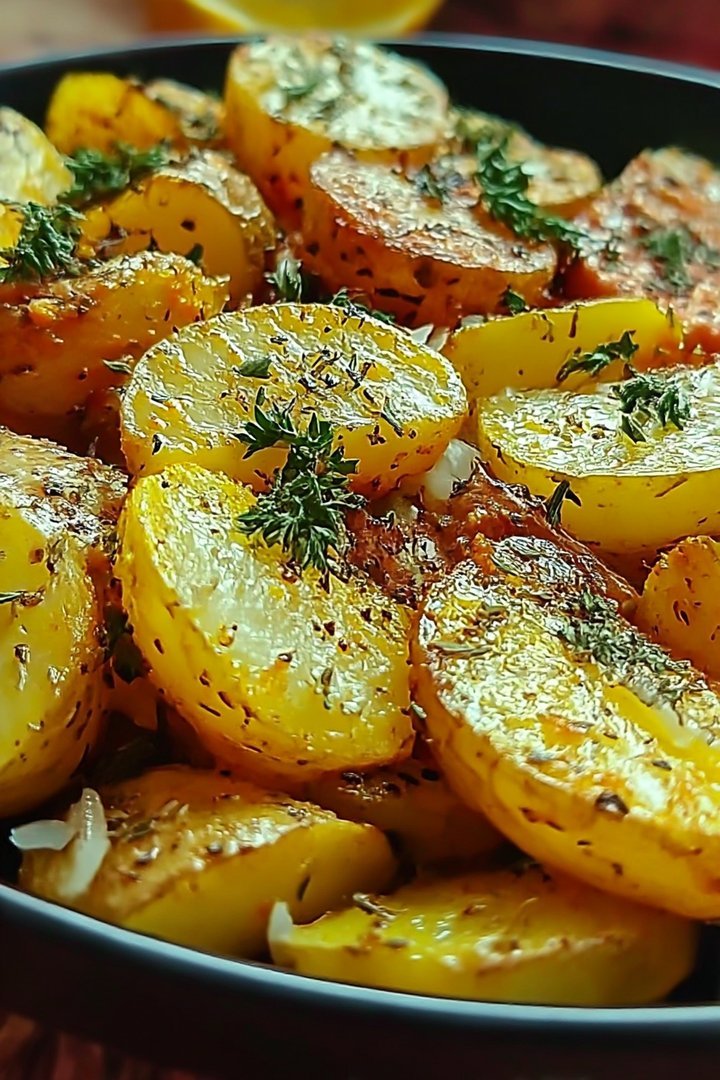 Oh, the aroma of bright lemons and herbs dancing together! Imagine sinking your teeth into potatoes that are crispy on the outside, fluffy on the inside, and bursting with sunshine. It’s like a Mediterranean vacation for your taste buds!