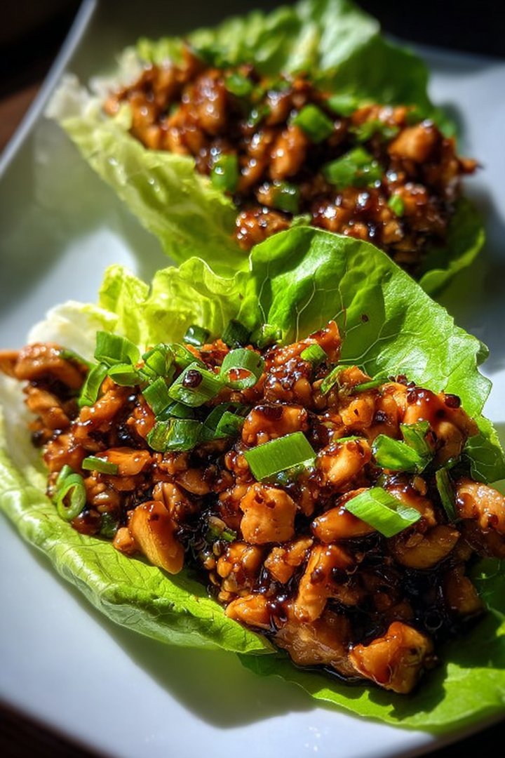 Garnish the lettuce wraps with extra sliced green onions or a sprinkle of sesame seeds for added flavor and visual appeal. Serve immediately and enjoy the *irresistible PF Changs chicken lettuce wraps recipe in 25 minutes*!