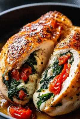 Roasted Red Pepper, Spinach, and Mozzarella Stuffed Chicken